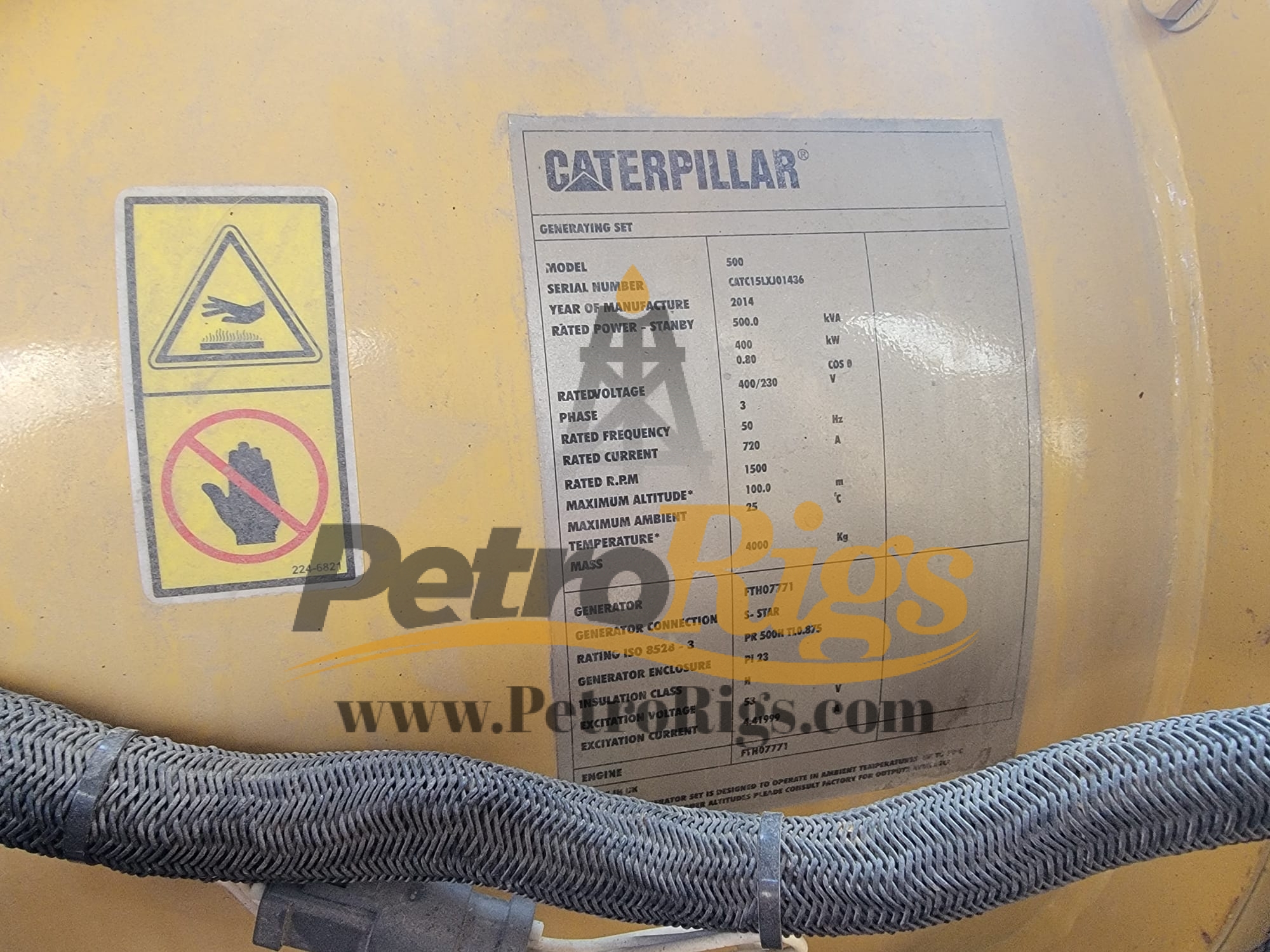 Low Hour Caterpillar C15 400KW Enclosed Genset. Gen-end Caterpillar Model 500, 500KVA, 400KW, 400/230VOLT, 3PHASE, 50HTZ, 1500RPM. Only 626 hours on this genset.