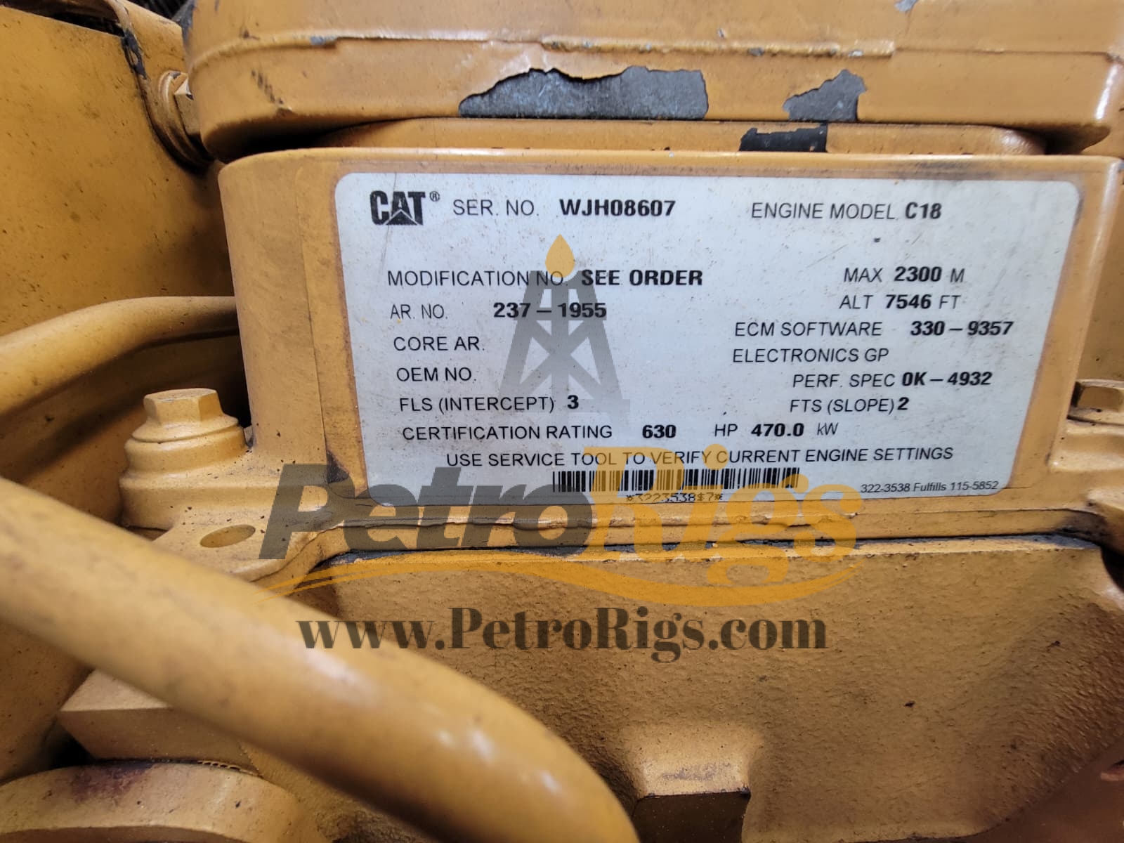 Caterpillar C18 Diesel Engine, Great Condition on this one. Arrangement Number 237-1955, 630HP, 2100RPM, 470KW.