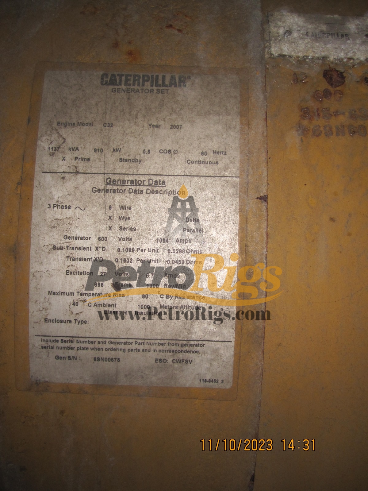 Three (3) Low Hour Caterpillar C32 910KW Gensets in Sound Attenuated Enclosures! 1137KVA, 910KW, 60HTZ, 3PHASE, 600VOLT.