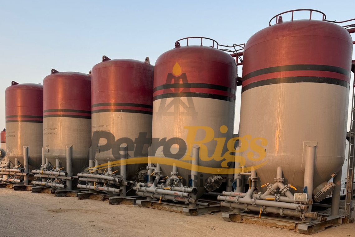 SPECS: Five (5) of these are 1050 Cubit Feet (7854 gallons), all steel welded construction c/w 4 lifting pad eyes and 2 trunnions on bottom, 8200 kg weight, Dimension -(L) 3.5 m x (W) 3.5 m x (H) 6.0 m . One of these is smaller for dust collection. Last inspection reports available to qualified buyers