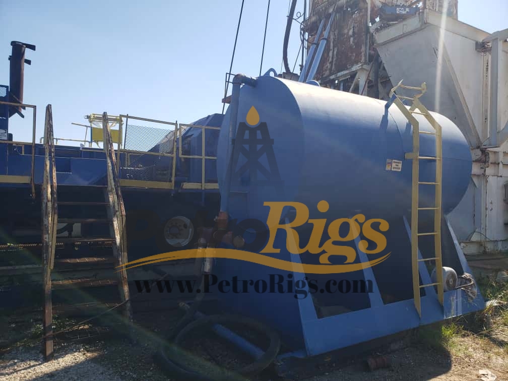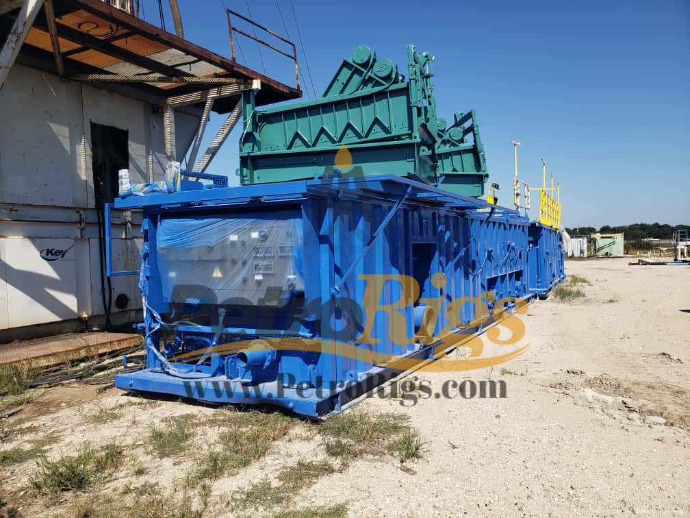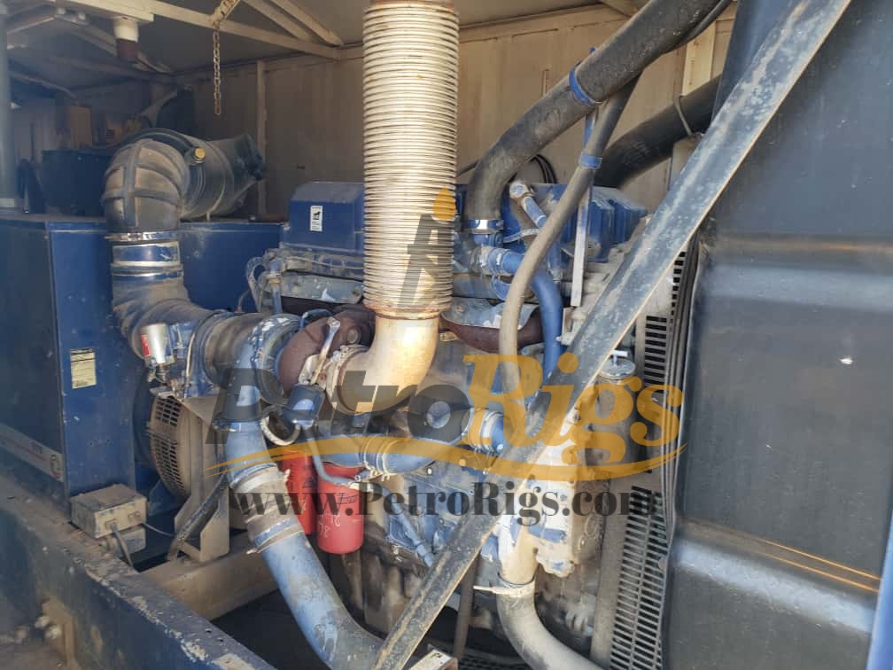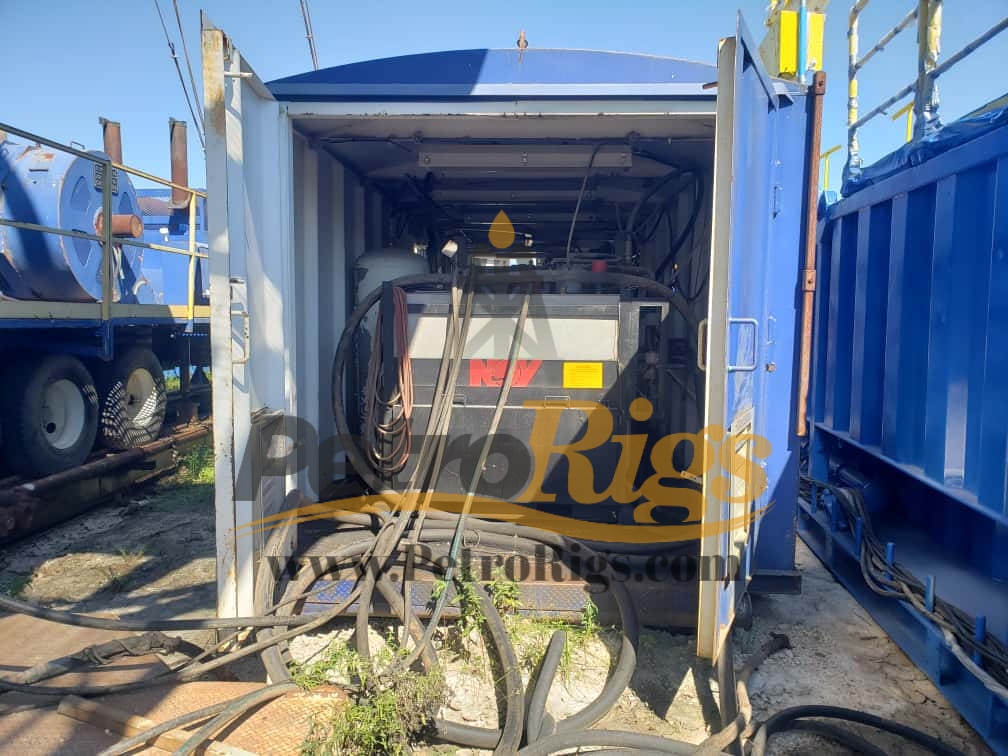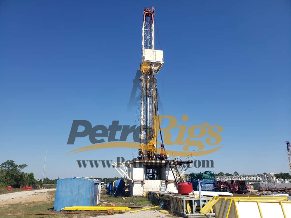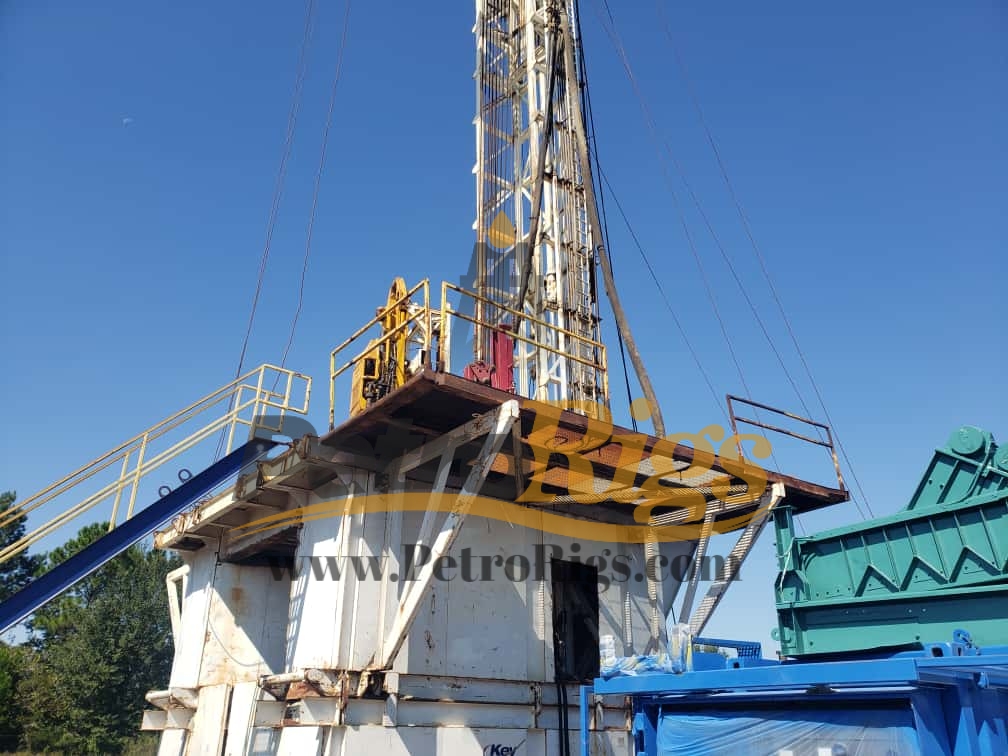 SPECS: CE1000 S/D Drawworks with LEBUS f/ 1-1/4″ Line w/ WPT Aux Water Brake, p/b DETROIT MTU 12V-2000 Diesel Eng, S/N-5352005701. ALLISON 6061 Transmission. 118’H 440,000# SHL Telescoping Mast w/ Dual Raising Cyls, Racking Board, 6-Sheave Crown Cluster, Warrior 250 ton Top Drive with HPU. AMERICAN Block w/ 5-Sheaves & Becket, Hyd Tong Cyls, Kelly Hose, 18″H x 28’L Pipe Rack, Mtd on 2010 STEWART & STEVENSON 4-Axle Back-In Trailer, VIN-1K9GF584XA1299002, w/ (4) Hyd Leveling Jacks, (2) Hyd Utility Winches, (2) 3-Stage Hyd Mast Raising Cyls., Deadline Anchor, Folding Walkways EA Side, 315/80R22.5 Tires