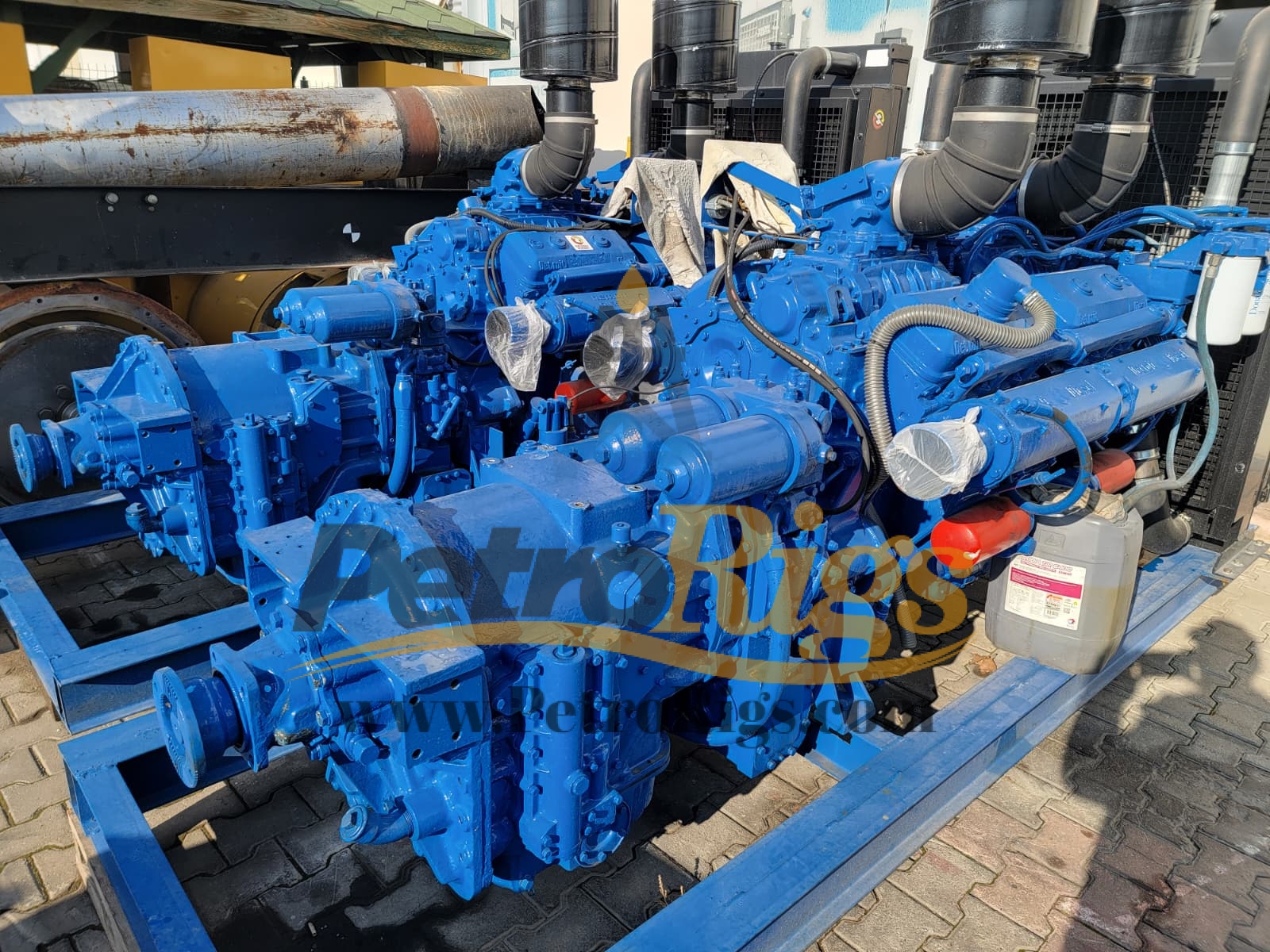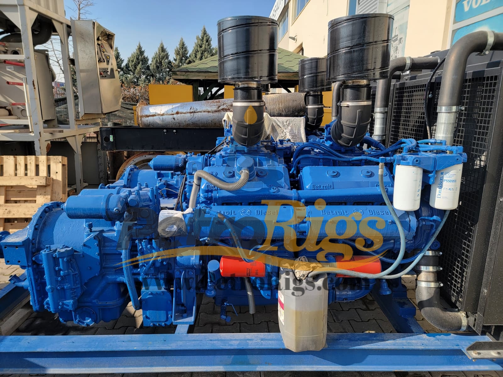 Two (2) Detroit 12v92 Diesel Engines, Oilfield Skidded and Field Ready. General SPECS: V-block diesel engine, with a two-stroke cycle with 12 cylinders, turbocharged and after-cooled, for a bore and stroke of 4.83 x 5 in, the displacement volume achieved is 18.1L, the peak torque this engine achieves is 2,766 N-m, at an rpm of 1200, Power rating ranges from 189 to 675 kW.
