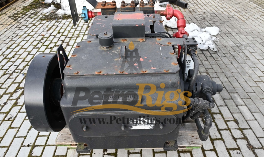 SPECS: 2 1/4″ Plungers, 165BHP, 300RPM, 10Kpsi, tee(gd-165t) well service pump, one piece cast steel fluid end, n/ iron stuffing boxes w/ lube hole, 2 .25″ colmonoy plungers, 838 style nonadjustable packing, ss wg a/r valves with inserts, left hand shaft extension, 4.00″ suction manifold three feed lubricator
