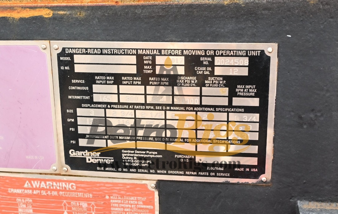 Low Hour Gardner Denver 10K Triplex TEE Well Service Pump. This pump has around 200 hours on it.