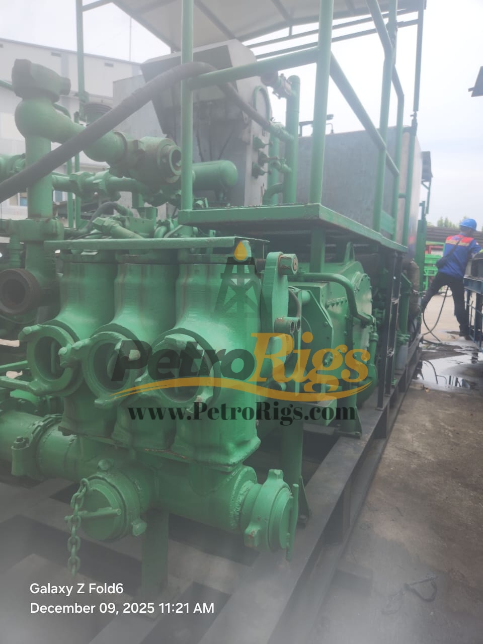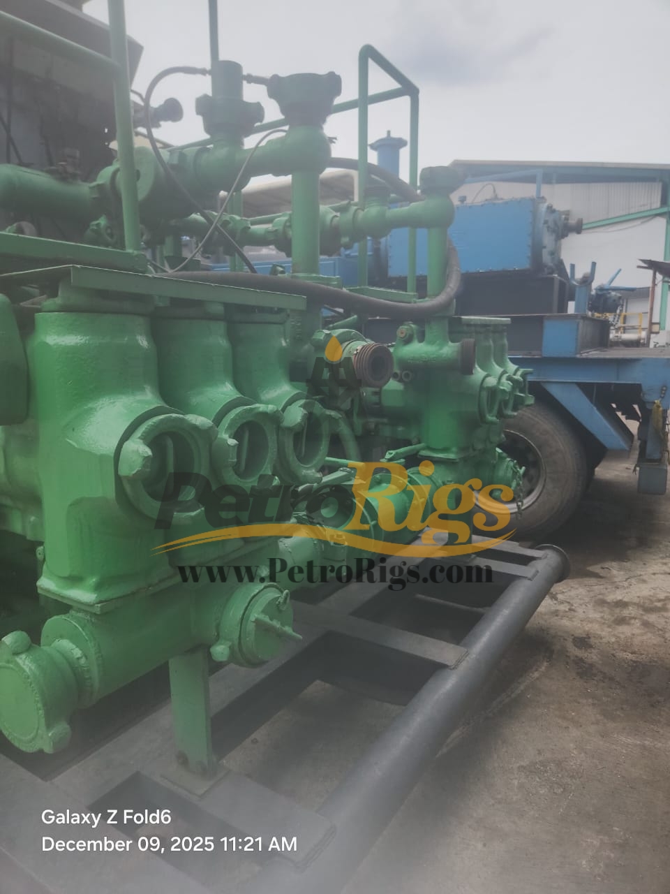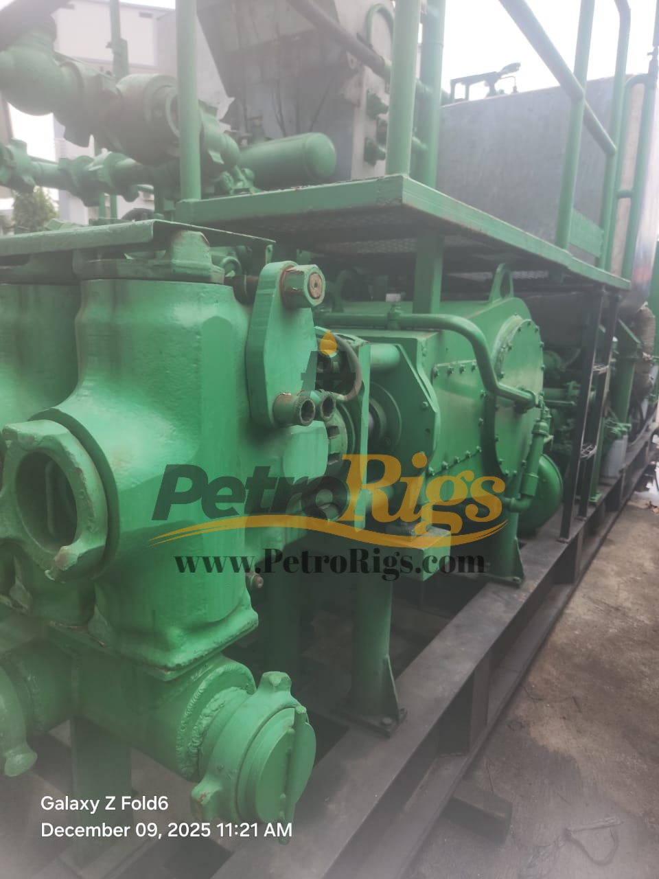 Halliburton HT-400 Twin Cementing Pump Package, complete with Detroit Diesel 8V71 engine and Allison transmission, mounted on skid and ready for immediate operation. This unit has been used in oil & gas operations and is currently in operational condition. The package is suitable for drilling, workover, or industrial pumping applications requiring a reliable high-pressure mud pump system. SPECS: Engines rated at 600BHP, Max Pressure 10Kpsi, Discharge 15Kpsi