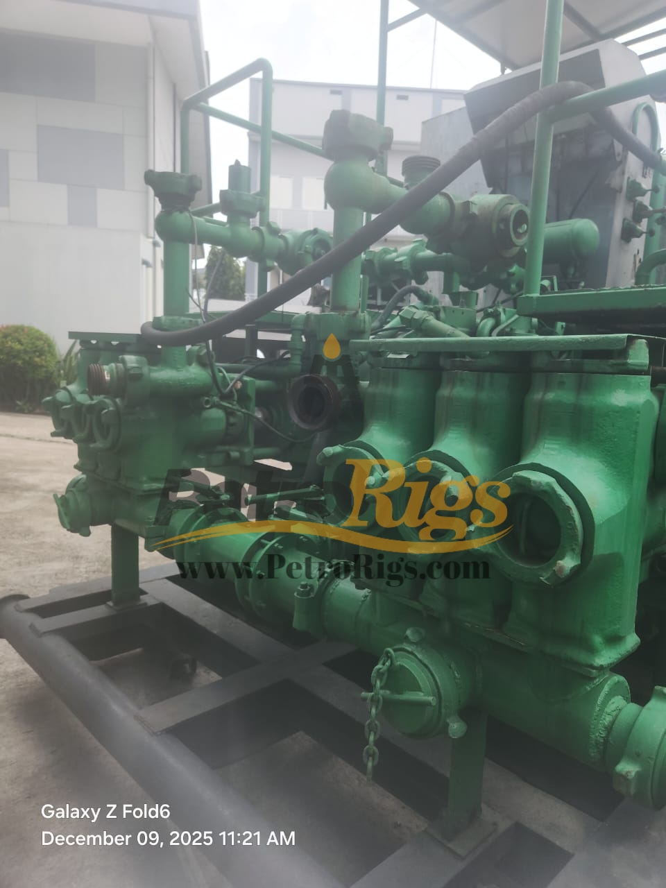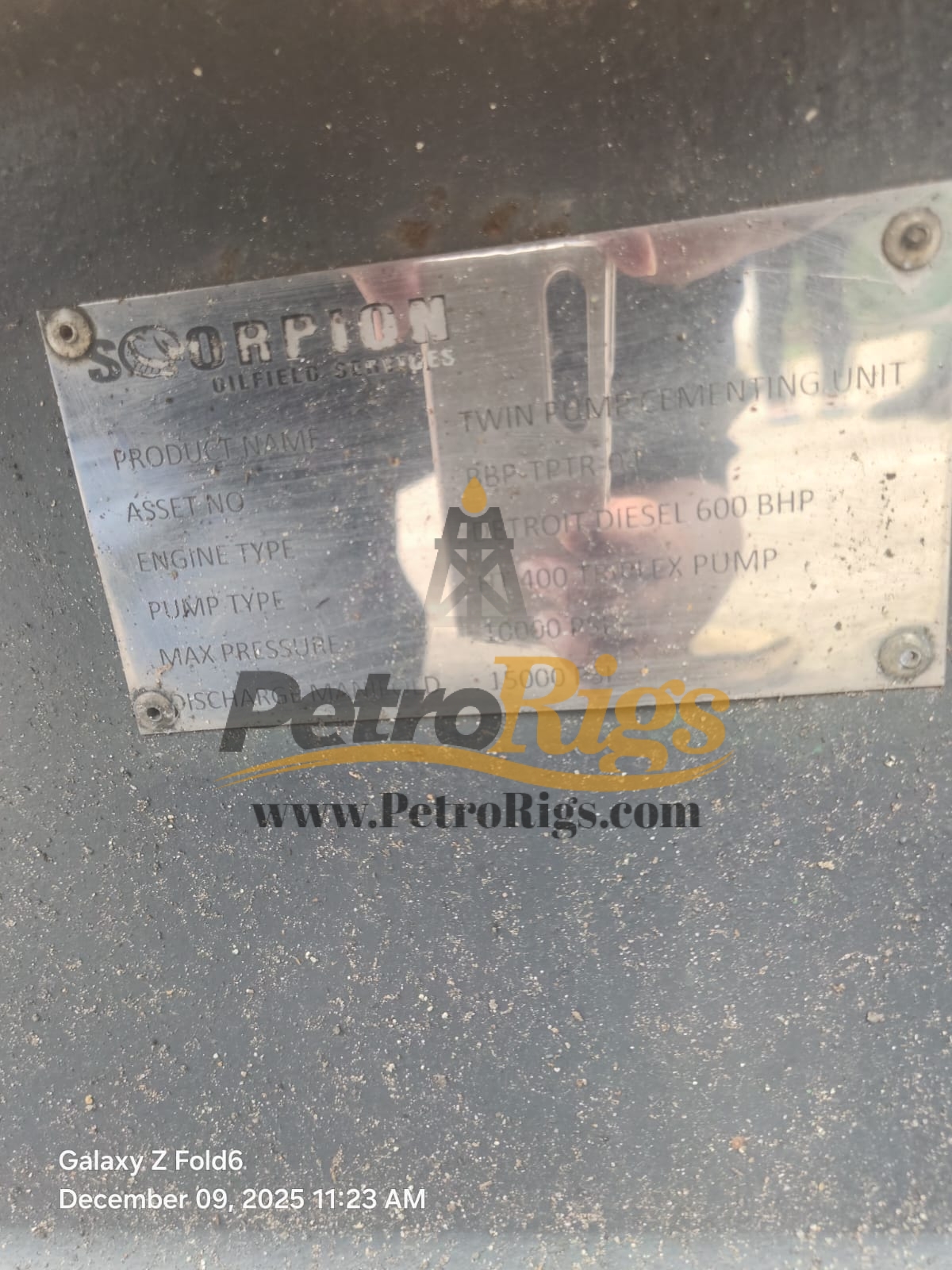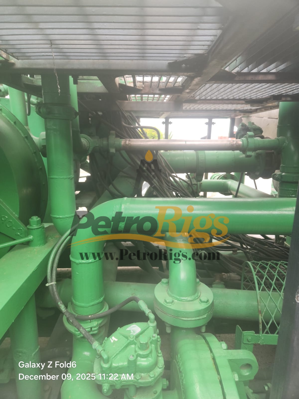 Halliburton HT-400 Twin Cementing Pump Package, complete with Detroit Diesel 8V71 engine and Allison transmission, mounted on skid and ready for immediate operation. This unit has been used in oil & gas operations and is currently in operational condition. The package is suitable for drilling, workover, or industrial pumping applications requiring a reliable high-pressure mud pump system. SPECS: Engines rated at 600BHP, Max Pressure 10Kpsi, Discharge 15Kpsi