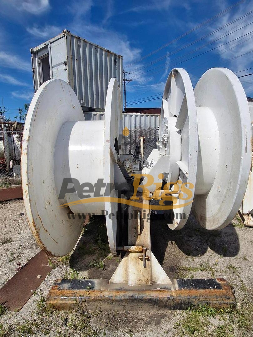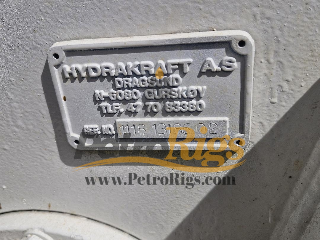 Hydrakraft A.S. Dual-Drum Hydraulic Deck Winch. Powered dual-spool / split-drum hydraulic marine winch, Heavy-duty steel central drive pedestal with twin flanged storage drums. Reference Number: 1118 13186 02.