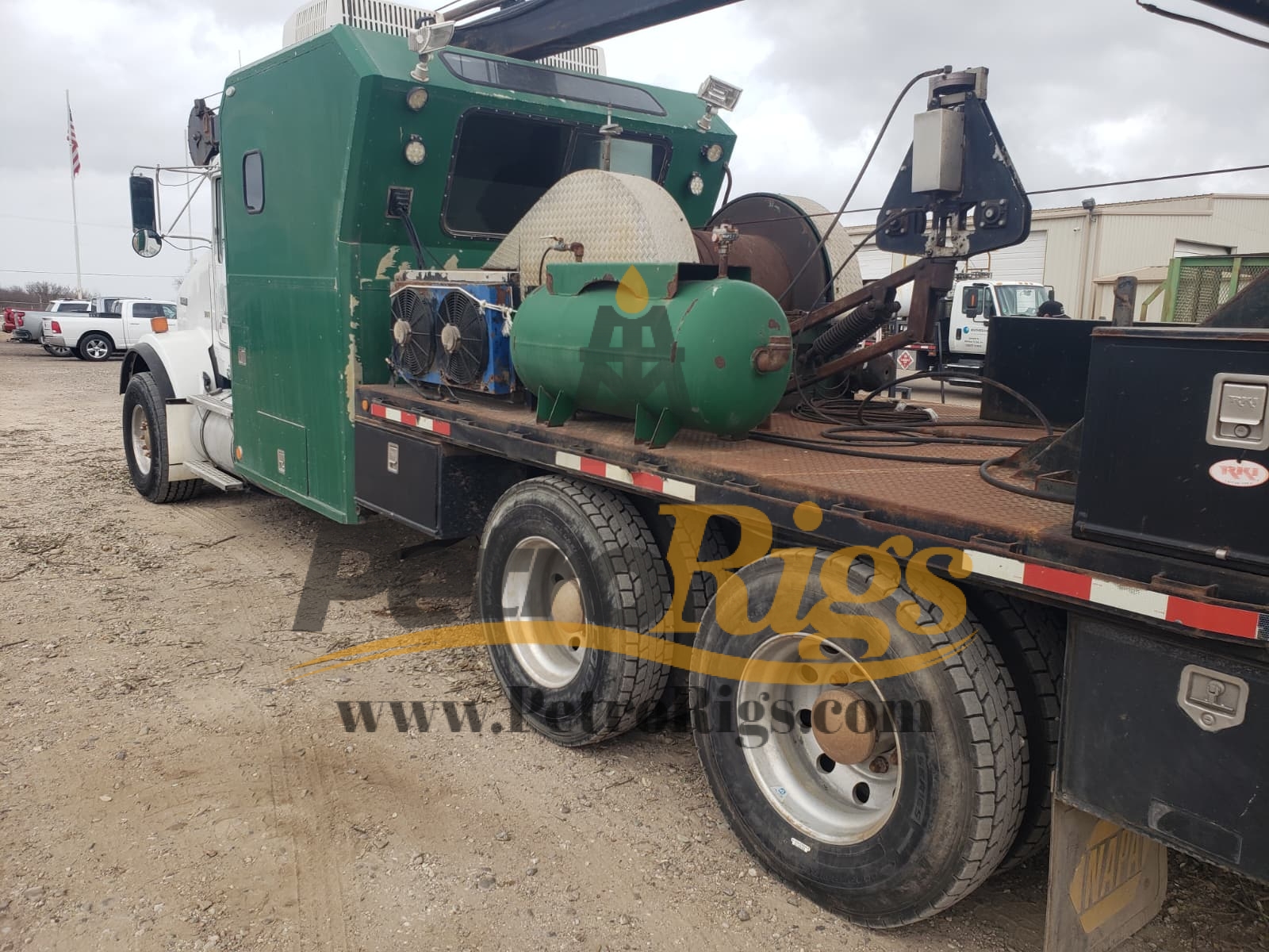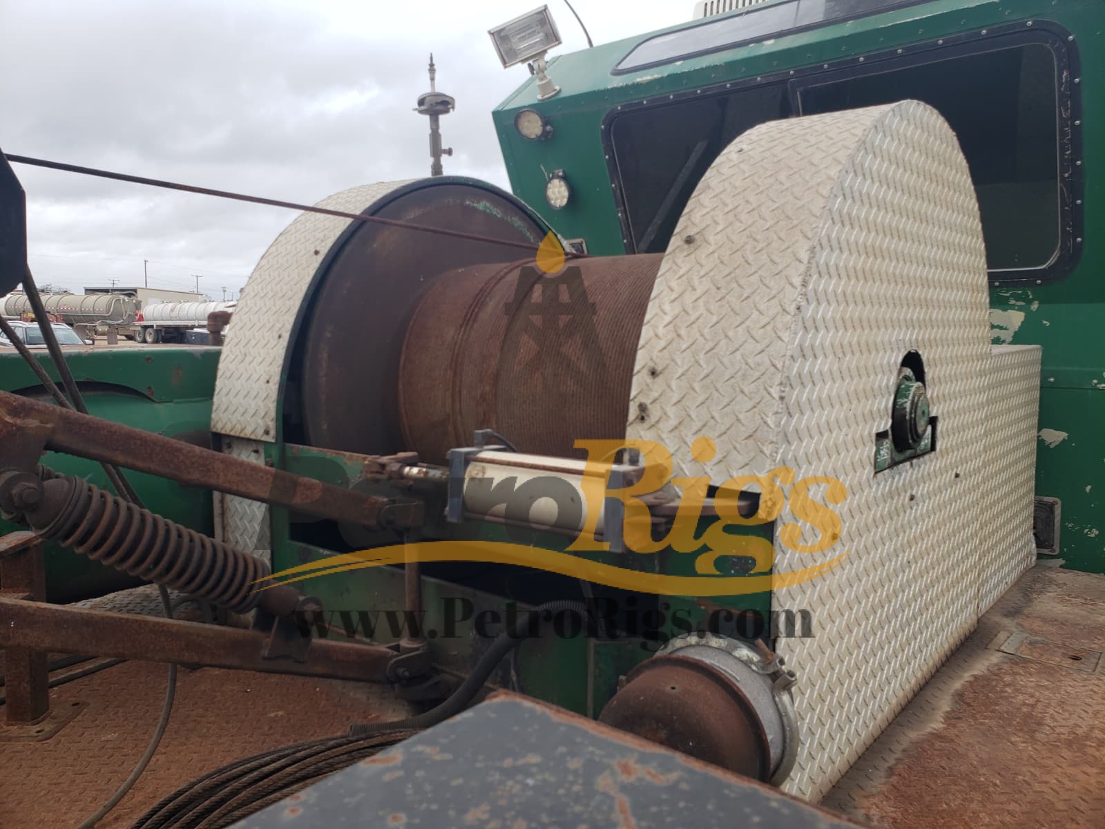 Low Hour/Miles Kenworth Swabbing Rig. Single drum hydraulic unit with 10,000′ of 5/16″ line and includes some tools. 49,048 miles/11,639 hours