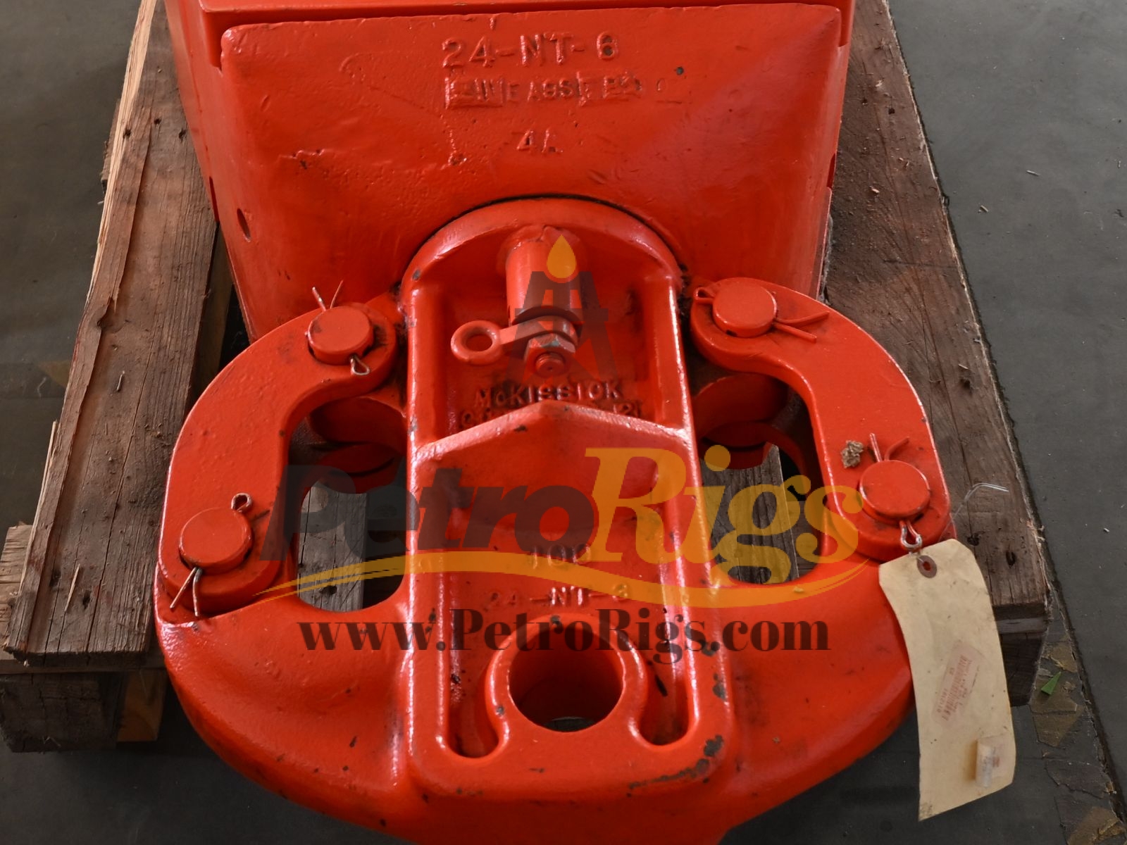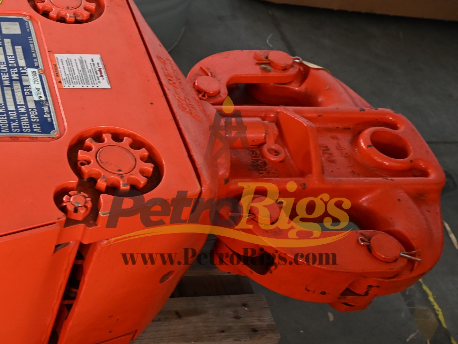Un-Used Surplus NEW McKissick 100 Ton Tubing Traveling Block, Model 83, 80 Series, Stock no 112181, Capacity 100 tons, Sheave Diameter 24”, Rope Diameter 25 mm, Weight 991 kg, Certificate API 8C. Stored inside climate controlled shop.
