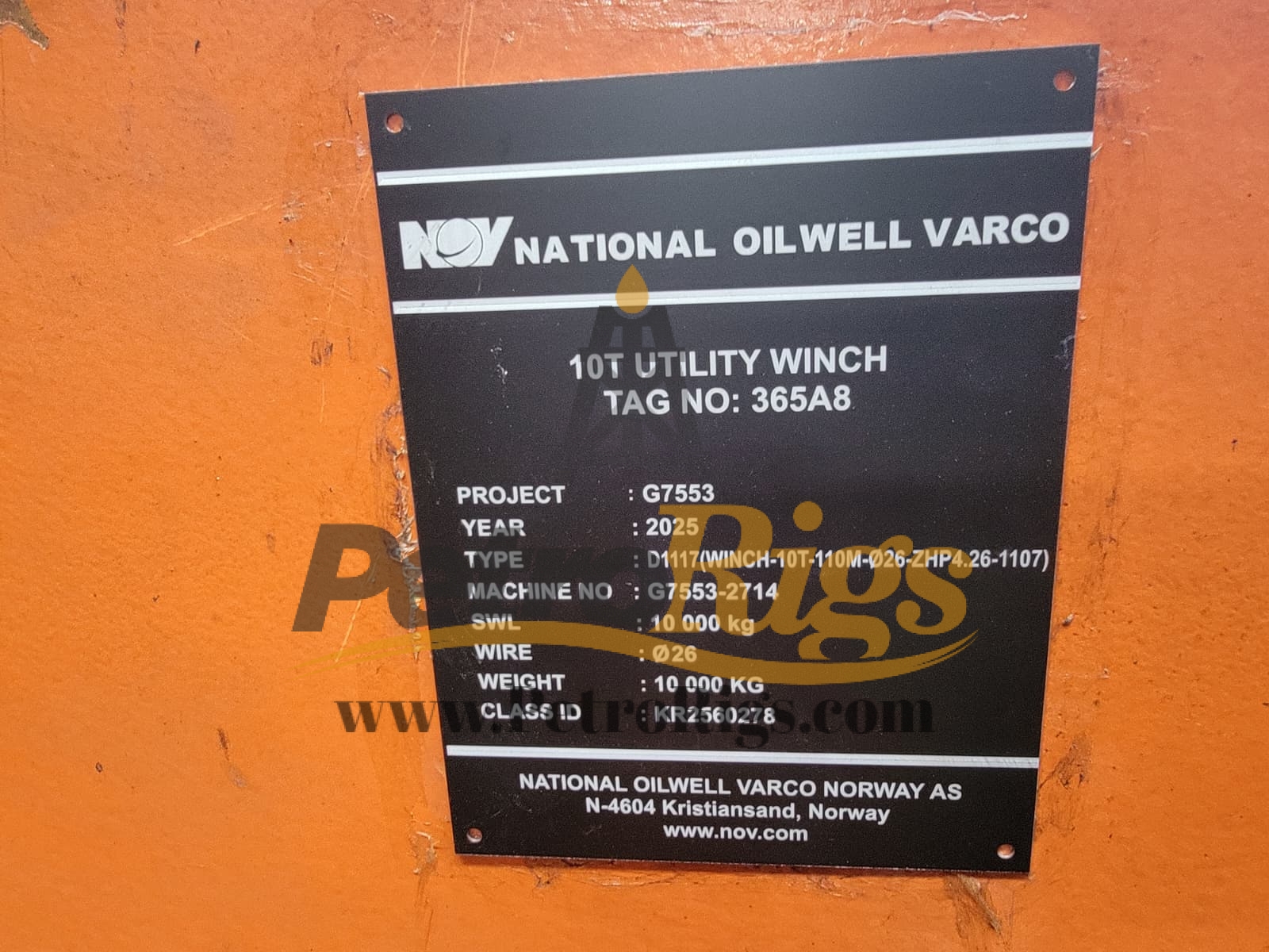 Two (2) Un-Used Surplus NEW National Oilwell Varco 10T Utility Winches. Type D1117, 10 Ton capacity, Tag Number 365A8.