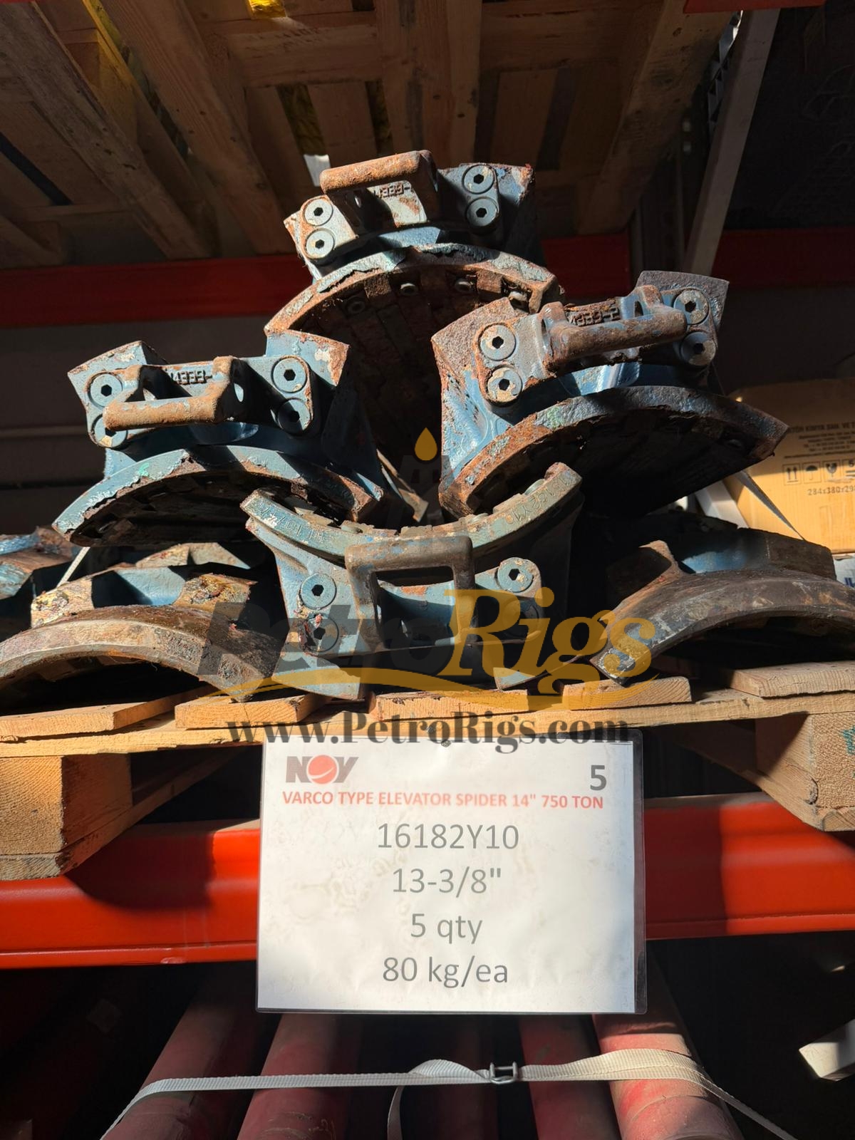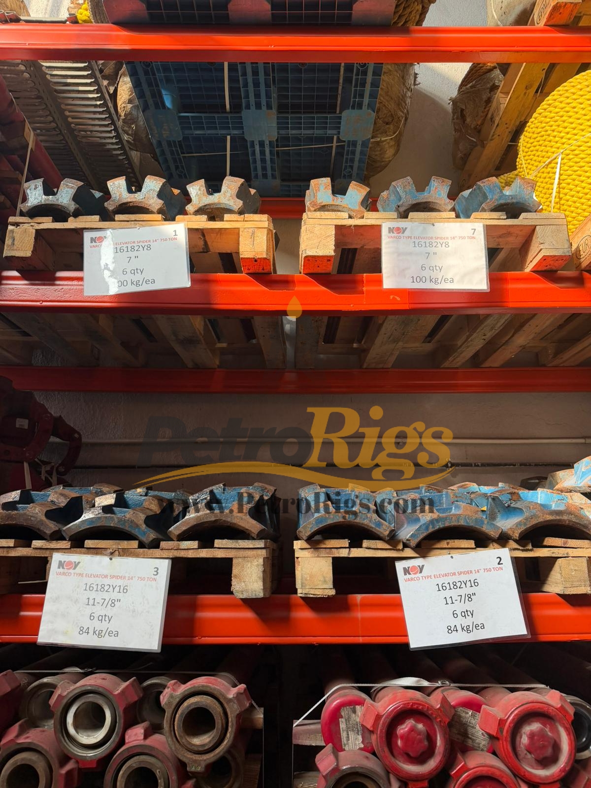 National Oilwell Varco 14″ 750 Ton Hydraulic Elevator Spider. Several Slips available, 13 3/8″ Slips (5) Sets, 11 7/8″ Slips (12) Sets, 7″ Slips (12) Sets.