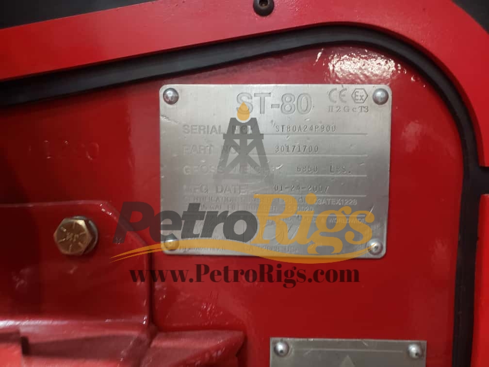 Rebuilt NOV ST-80 Iron Roughneck. Pipe Capacity of 4 1/4″ to 8 1/2″ with Make-up/Break-out Torque of 60,000/80,000 ft-lbs.