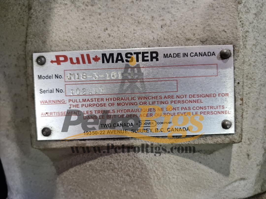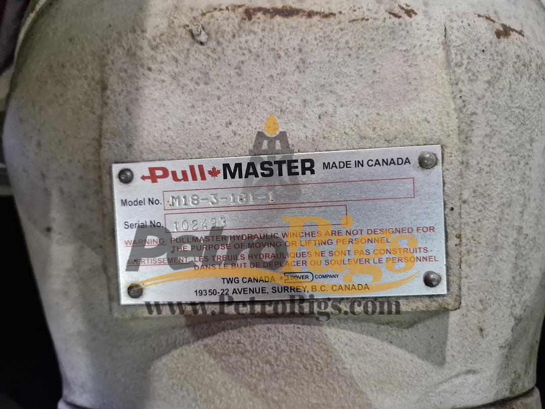 Two (2) Pullmaster M18 Planetary Hydraulic Winches. Pulling Capacity 18,000 lbs (Bare drum line pull). Operating Requirements Designed for a maximum flow of 76 GPM at 2,300 PSI. Drum Dimensions 15.5-inch flange diameter, 8.5-inch barrel diameter, 10-inch drum length. Weight: Approximately 745 lbs per unit (without cable).
