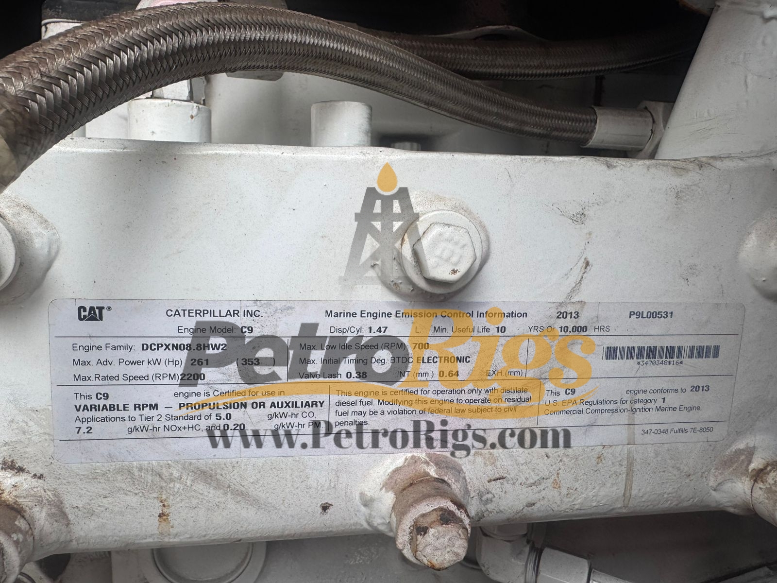 SPECS: Two (2) Caterpillar C9 Engines, Two (2) Allison 13D04 TIDA Transmissions. Hours of engine 1# 784, Serial of engine 1# P9L00530. Hours of engine 2# 397, Serial of engine 2# P9L00531