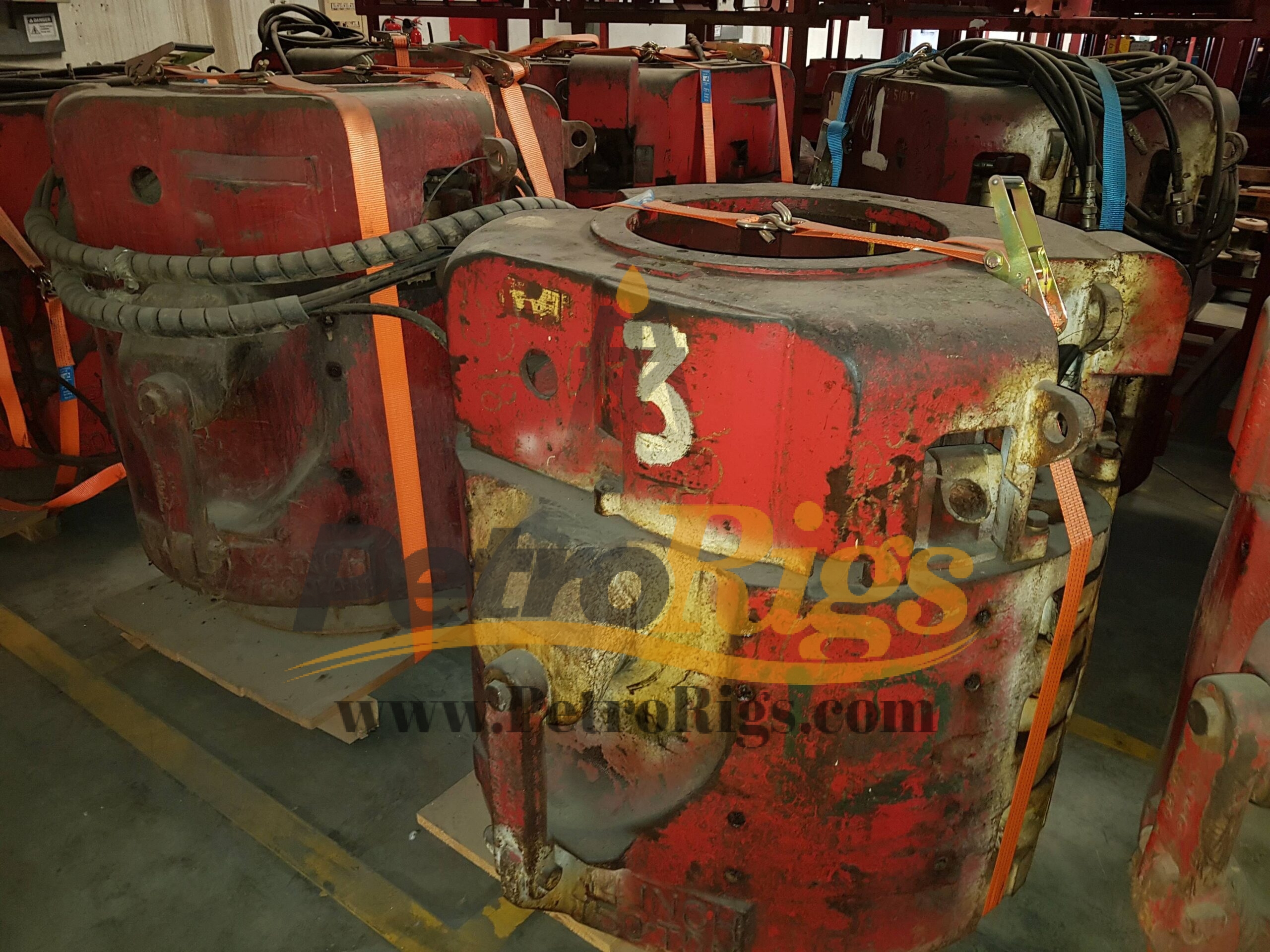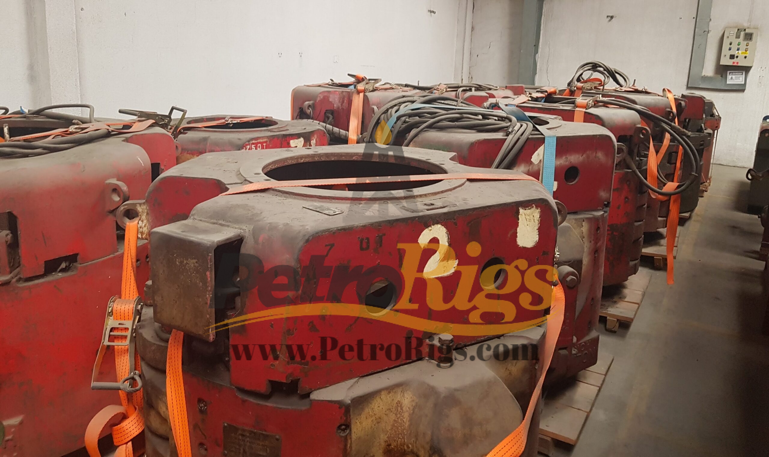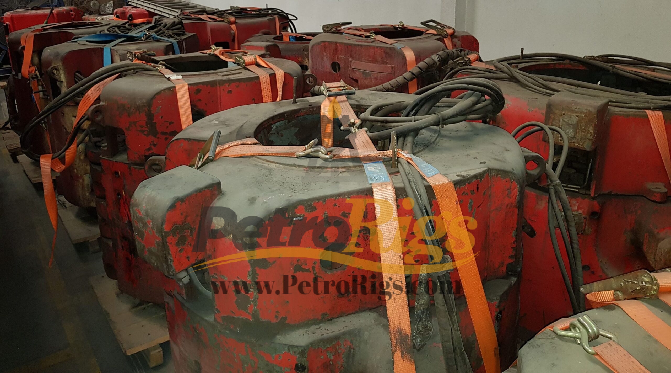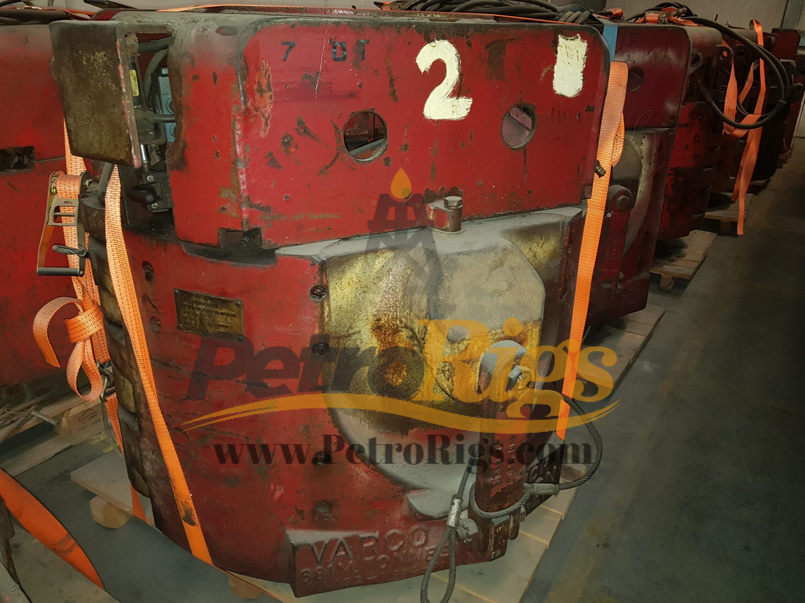 Six (6) Varco 14″ SL 750 Ton Elevator/Spider Bodies (P/N: 16150Y) available in Used (Good) condition. Twenty-Six (26) 750 Ton Slip assemblies available, Sizes 7″ up to 14″. Available as Package deal or Individually.